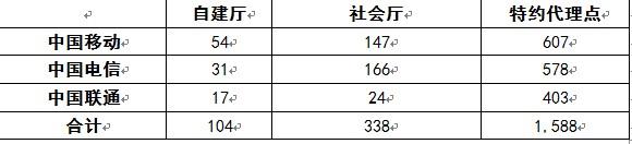 圖表2三大電信運營商截止2009年營業廳數量(單位:千個)