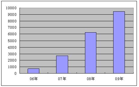 圖表3電信行業中高端自助服務終端合作運營設備2006年-2009年數量(單位:臺)
