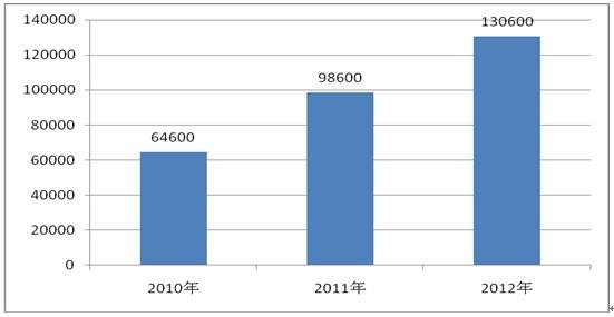 圖表4電信行業中高端自助服務終端設備2010年-2012年保有量預測(單位:臺)