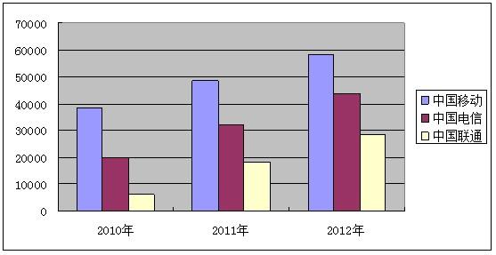 圖表5三大電信運營商中高端自主服務終端設備2010-2012年保有量預測